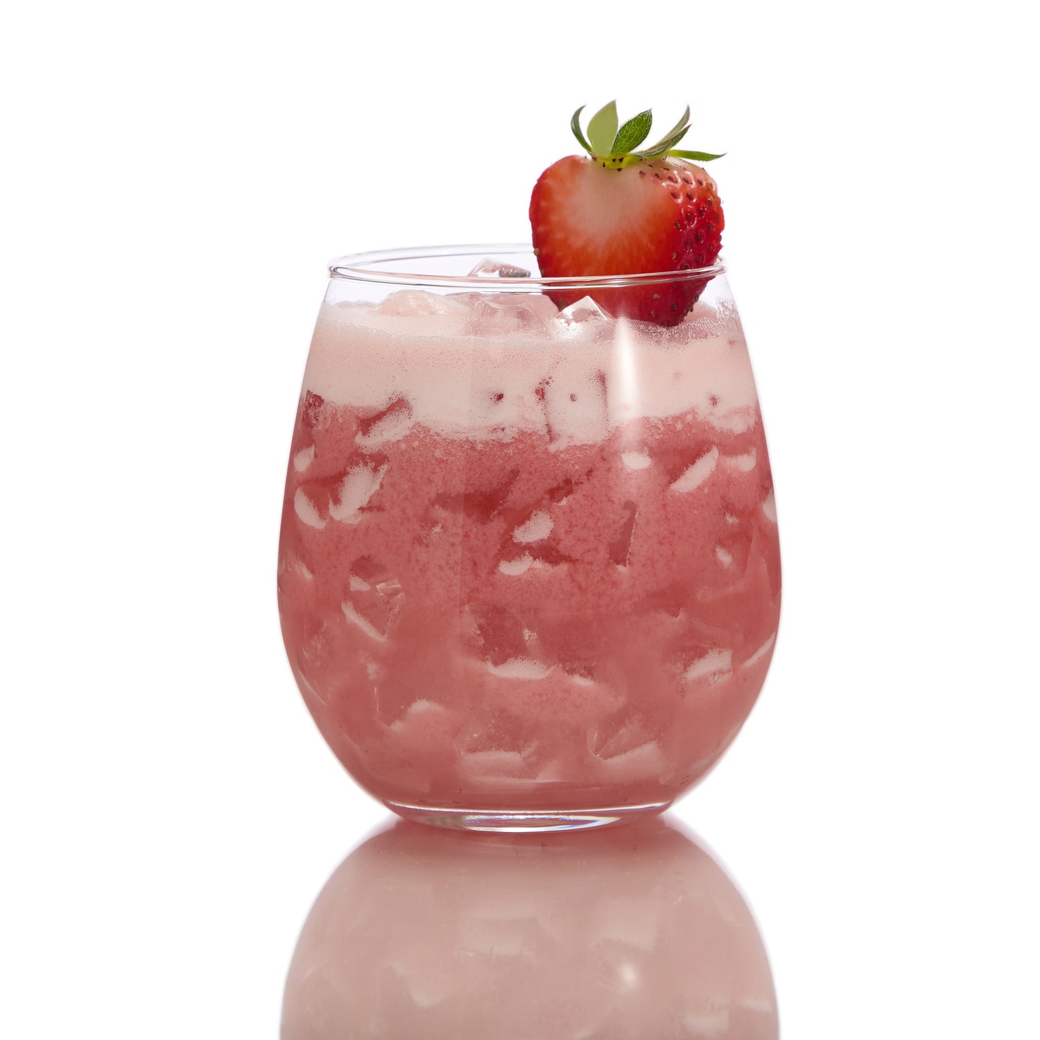 Garnish: Sliced strawberry and a sprig of fresh mint